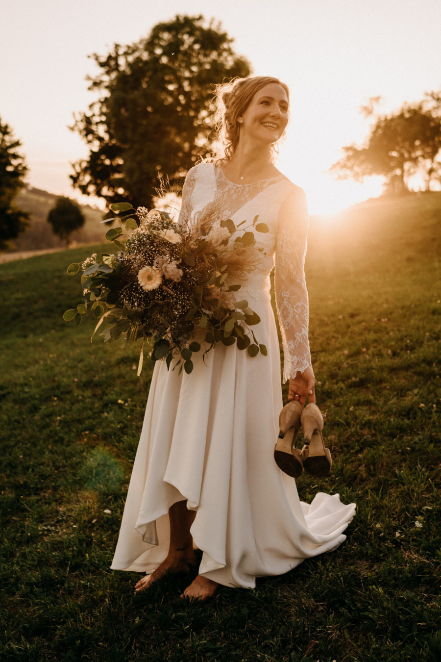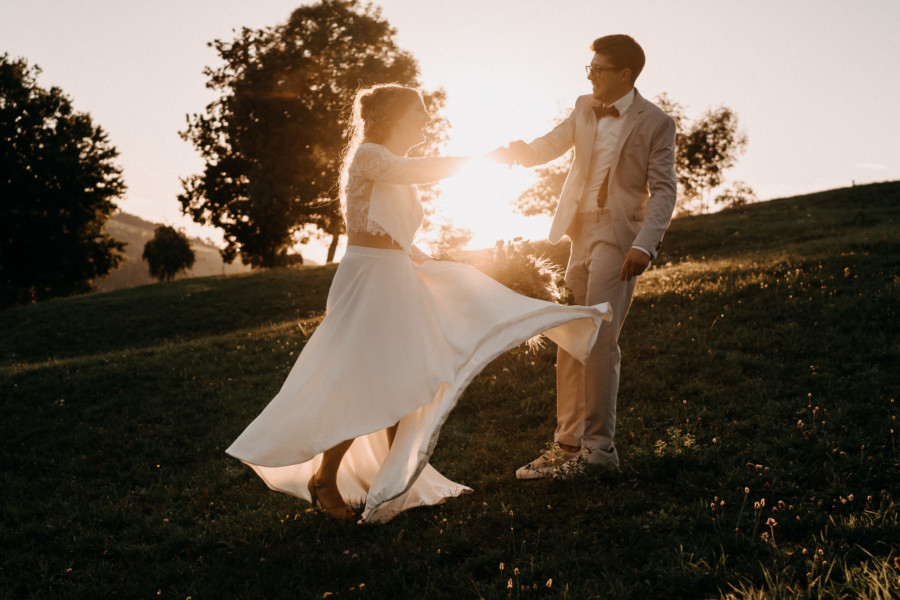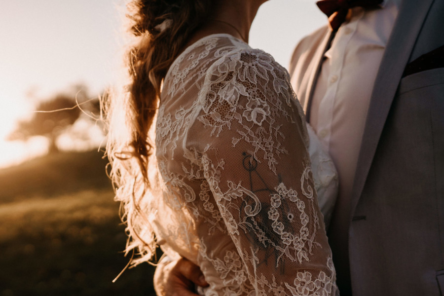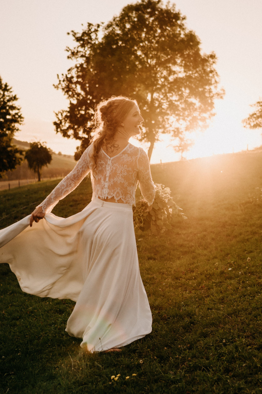 Julia und ich hatten auf Anhieb eine tolle und unvergessliche Zeit. Sie ist witzig, frisch und vor allem lässig. Diese Eigenschaften sollten sich auch in ihrem maßgeschneiderten Brautkleid wieder finden. Schnell war klar, dass sie mit einem Zwei-Teiler liebäugelt, wofür ich natürlich gleich zu haben war. Ein Zwei-Teiler beherbergt stets hohen Komfort, Bewegungsfreiheit und die Verschmelzung von Coolness und Anmutigkeit. Bei der ersten Besprechung war noch unklar, welche Art von Ausschnitt sie gerne möchte, eher kurze oder lange Ärmel und ob der Rocke vorne kürzer sein solle.