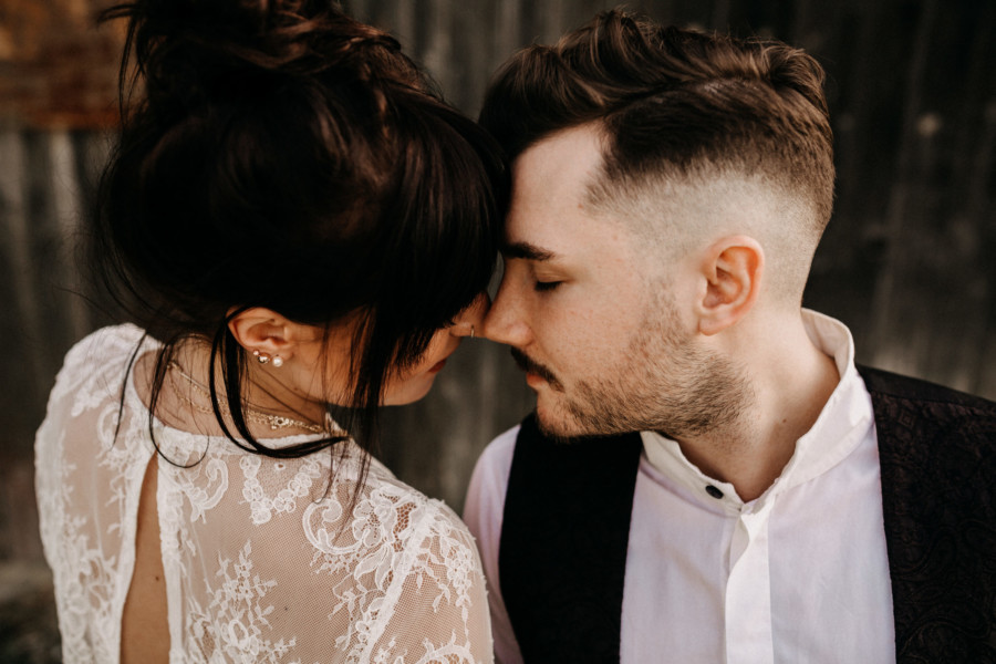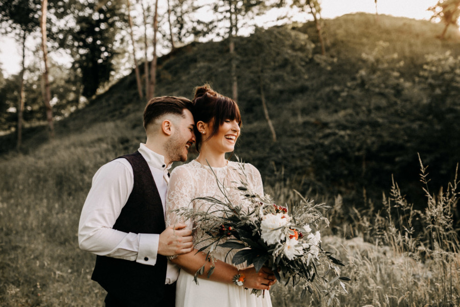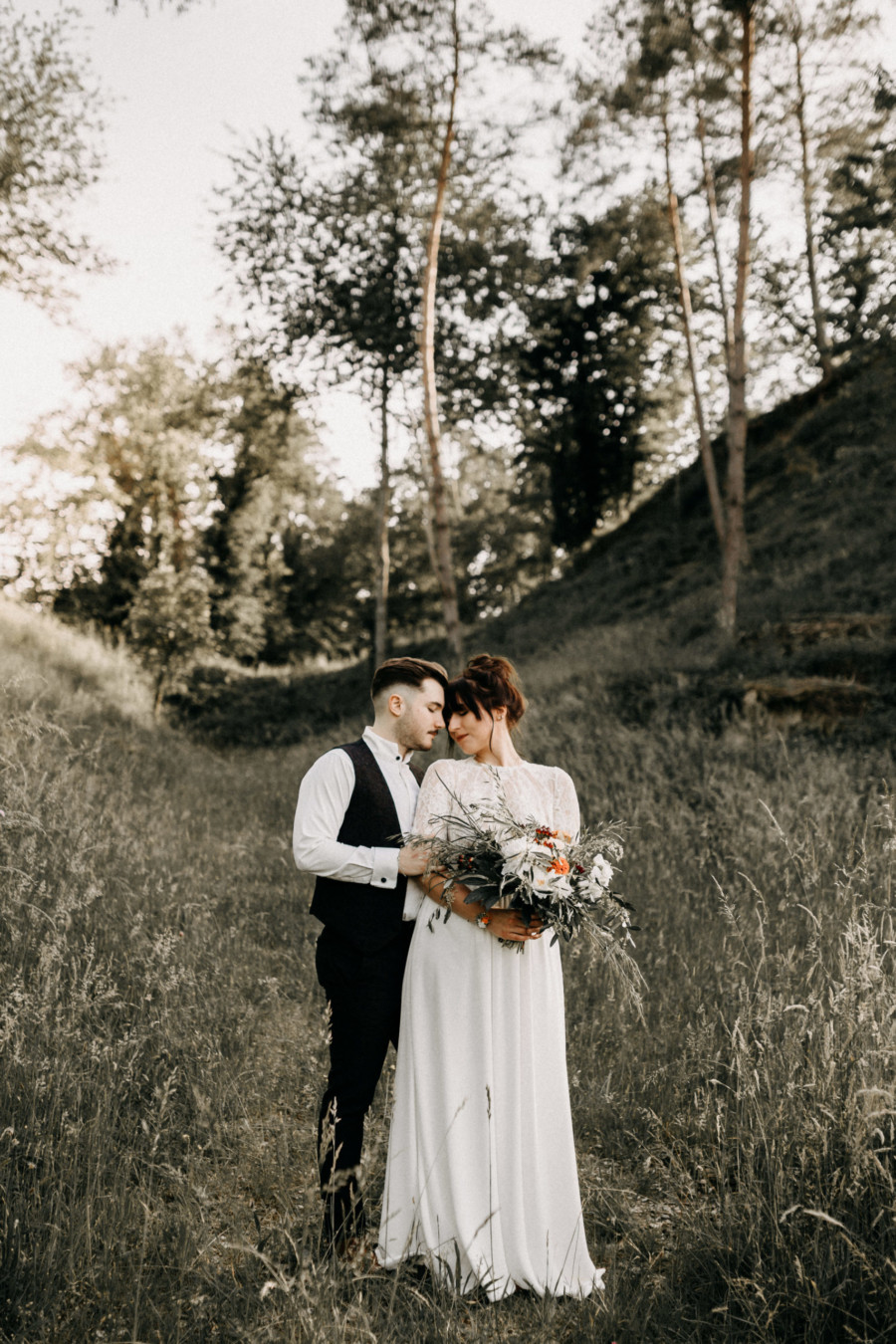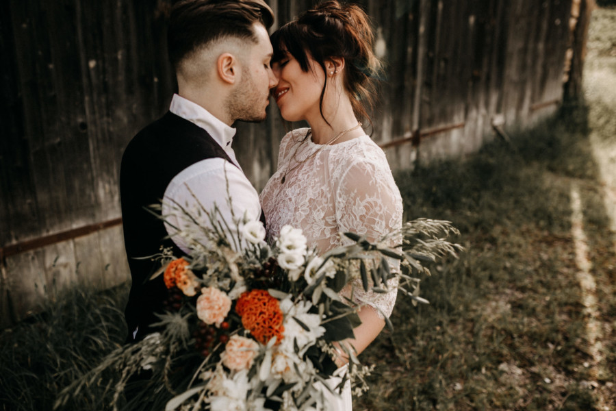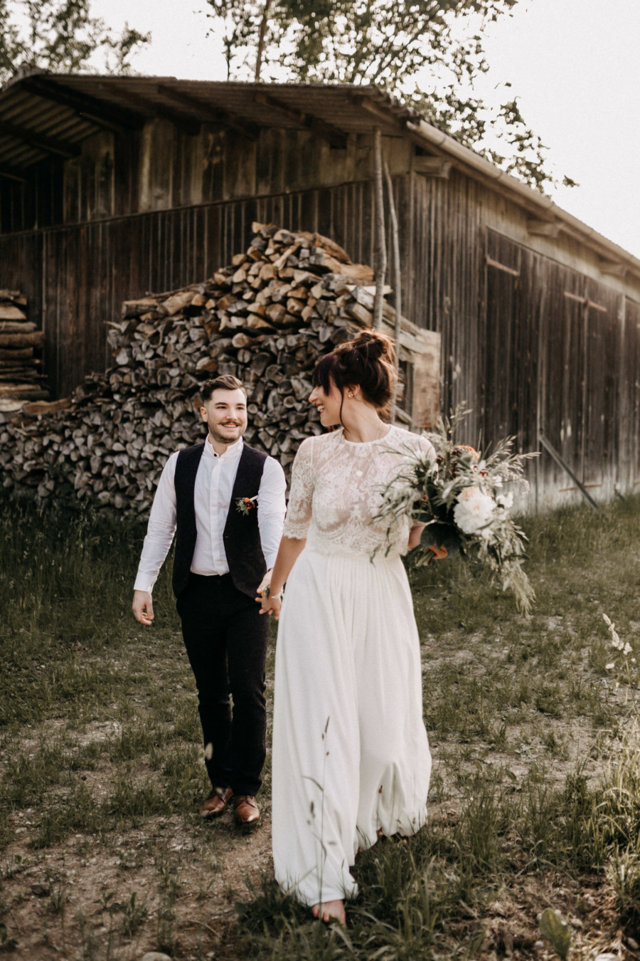 Ein Zweiteiler-Brautkleid bestehend aus einem zarten Spitzentop mit einem wunderschönen floralen Muster. Dieses Braut-Top lässt sich am Rücken schließen und besticht durch die Offenheit und die wundervolle Spitzenborte.